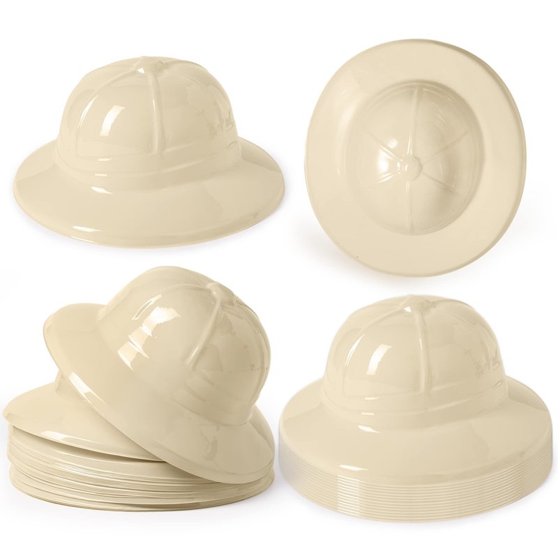 - SUPER VALUE PACK. Our Safari Explorer Party Favor includes 24 Pcs Toy Jungle Theme Animals Explorer Party Hat. Each of the hats are 11 x 10 x 5 inches with Khaki Color. These are made out of a durable yet lightweight plastic material.