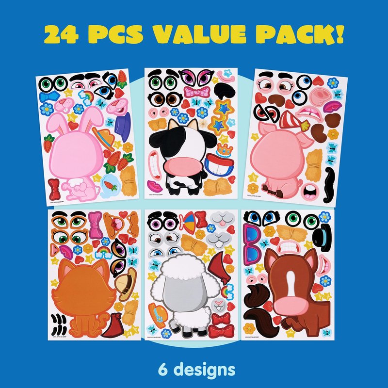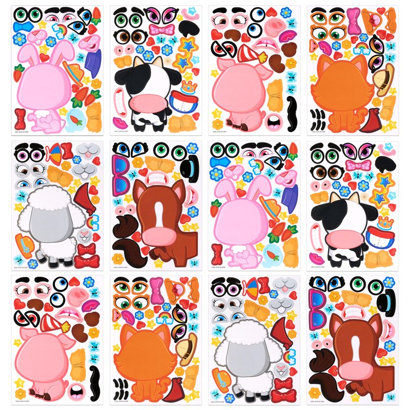 JOYIN 24PCS 9"x6" Make a face Stickers for Kids, Make Your Own Farm Animal Stickers, Party Favors Kids Crafts, Goodie Bags Stuffers for Kids, Classroom Rewards
