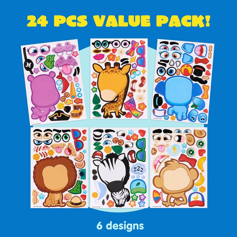 JOYIN 24PCS 9"x6" Make a face Stickers for Kids, Make Your Own Safari Animal Stickers, Jungle Party Favors Kids Crafts, Goodie Bags Stuffers for Kids, Classroom Rewards