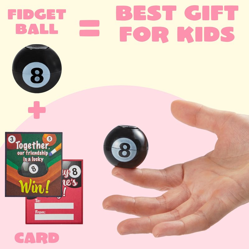 - SUPER VALUE PACK . Our Valentines Party Favor Toy Set includes 28 gift cards in 4 designs,And 28 fidget spinner balls in 4 designs. This will be such a lovely gift to give this valentines day!