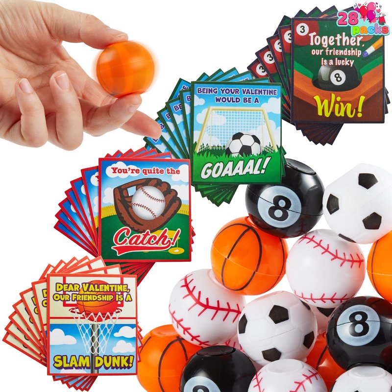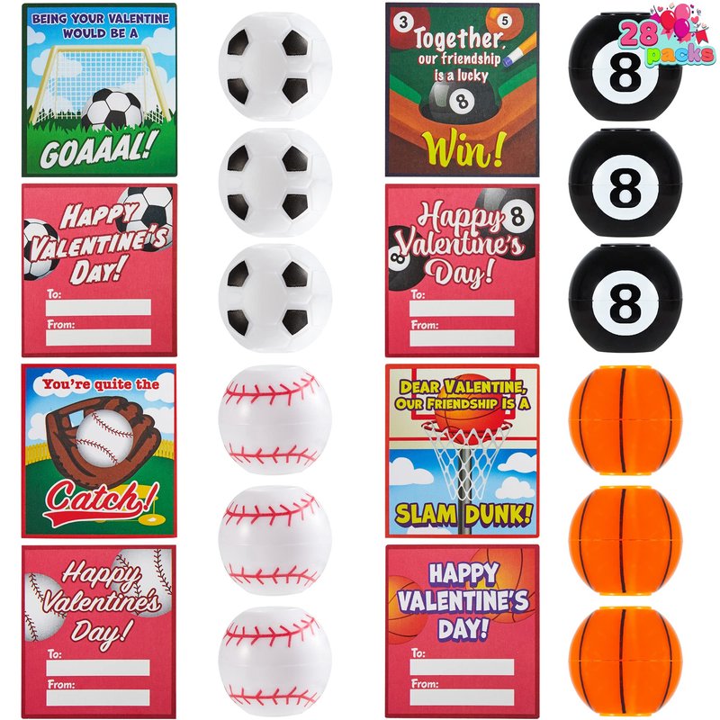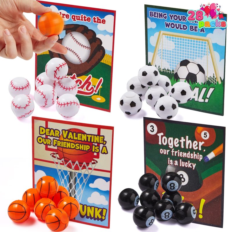 JOYIN 28 Packs Valentine's Day Cards with Mini Sport Fidget Balls for Valentine's Classroom Exchange, Valentine's Party Favors Squeezable Sensory Fidget Balls for Kids, Party Favors, Birthday Gifts for Boys & Girls