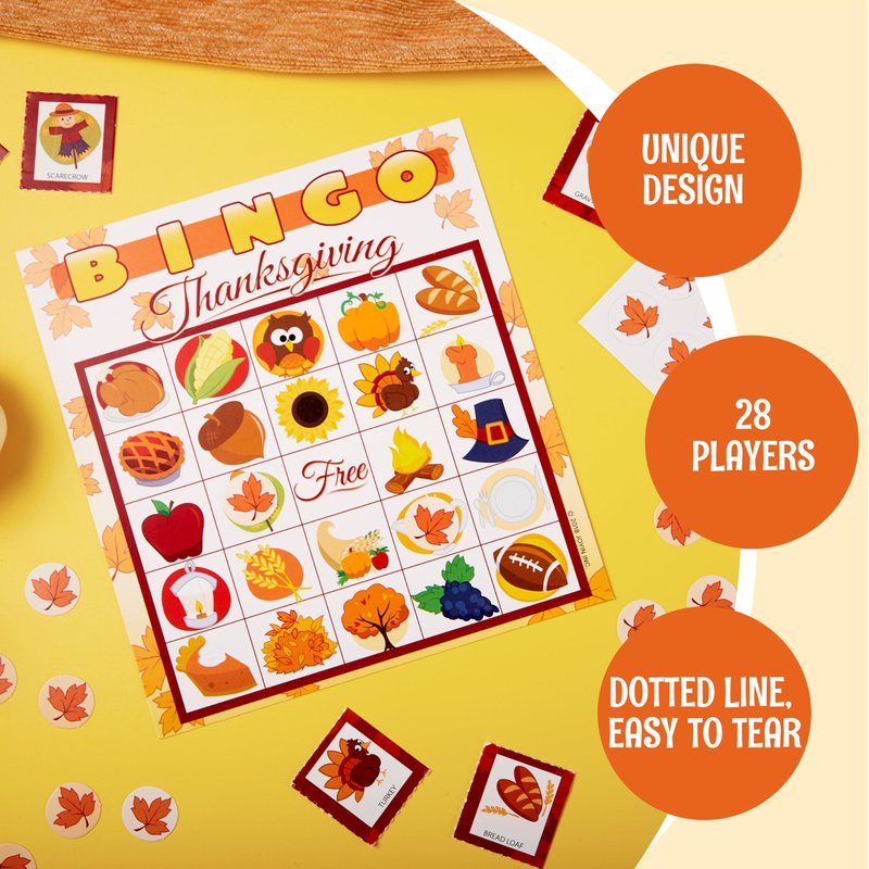 JOYIN 28 Pieces Thanksgiving Bingo Cards for Kids Indoor Family Activities Party Card Games, School Classroom Games, Thanksgiving Party Favors Supplies, Family Activity