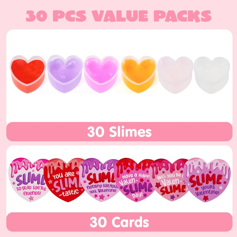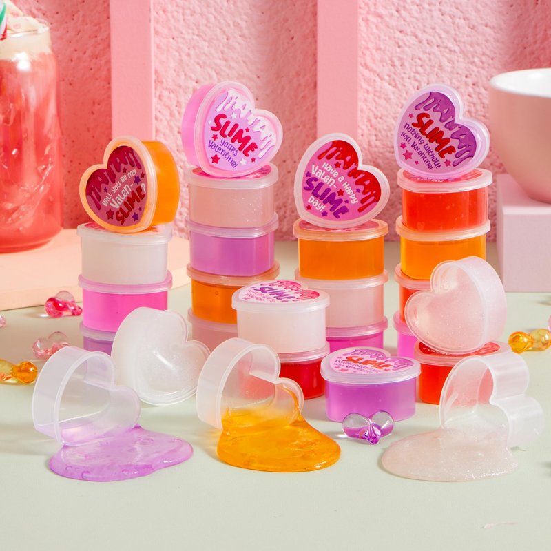 - IDEAL GIFT:Our Heart Shaped Slime with stickers Valentine Party Gifts Set provides fun and entertainment for your kids! It’s a great gift option for kids’ school classroom prizes, gift exchange, love notes and more!Valentine's day slime are perfect for kids, Valentine's Day, Class Events, Gift Exchange, School Classroom Prize, Love Notes, Party Favor and any Occasions.Our slime party gifts are a must-have for any party.