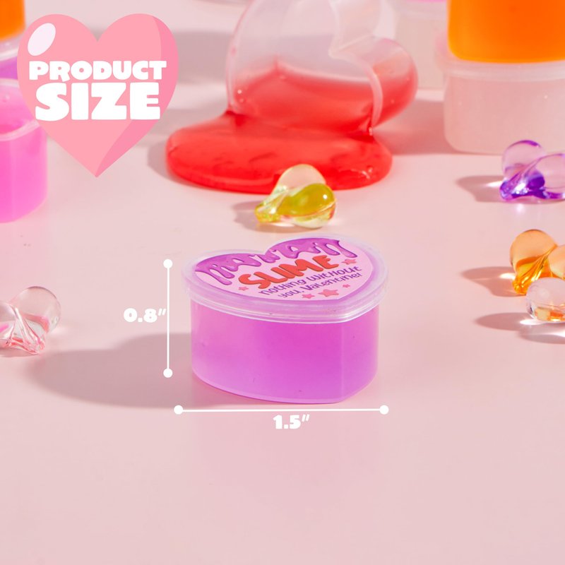 - VERSATILE PARTY GIFTS:Each slime heart box is 1.5*0.8inch.These fantasy slimes provide a sensory play experience, promoting stress relief and imaginative exploration for endless hours of fun. The slime set can also be a great valentine gift for kids, a classroom exchange gift, a prize for parties, or other valentine activities.