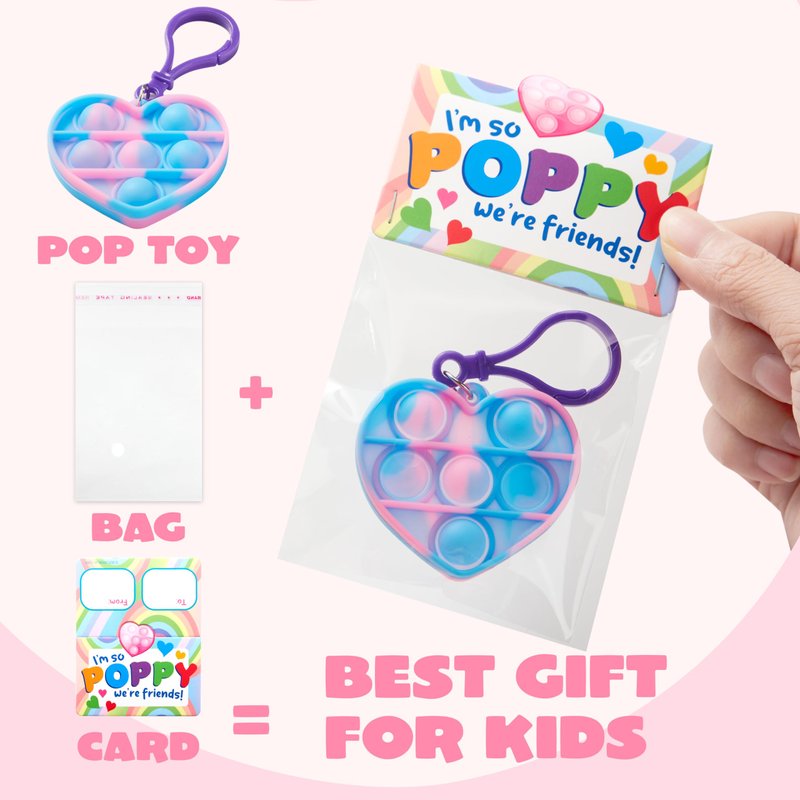- GIFT OF CHOICE: A warm gift for Classroom Exchange, each Kawaii Stress Relief Fidget comes with a matching card, adding a personalized touch to the Valentine's Day celebration. Beyond classroom exchanges, these Mini Pop Toys make fantastic Valentine's Day, Holiday party favors,Gift Exchange, Game Prizes, School Prize, Love Notes and any Occasions, also serve as year-round stress relief and fidget toys, bringing a calming sense of emotion wherever they go.