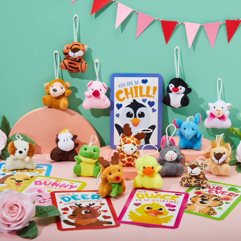 - VERSATILE PARTY FAVOR: Valentine's Day cards with animal plush toys are suitable for children and adults. Beyond Classroom Exchanges, these Animal Plush Toys make fantastic Party Favors, ensuring lively celebrations and interactive fun for every child.