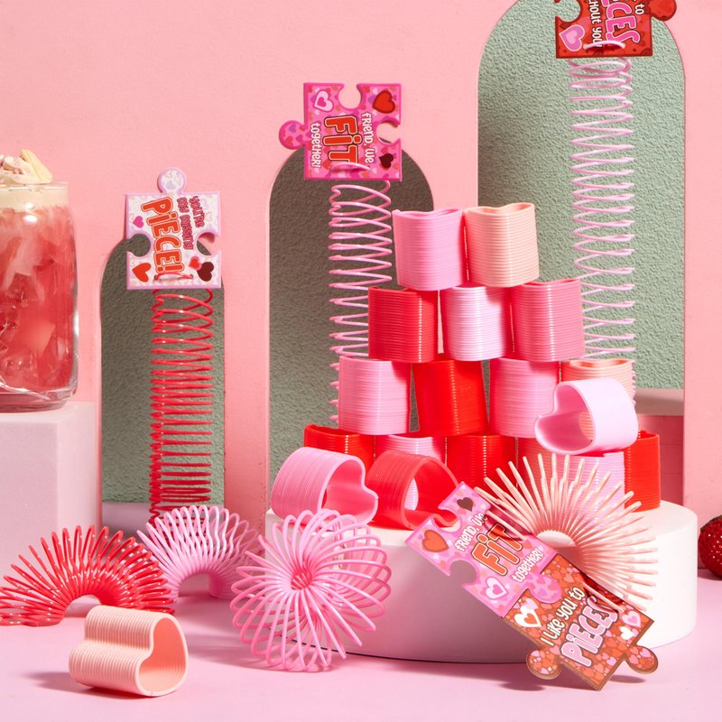 - DESIGNS: Mini Springs Toys in this suit features a heart shape, meanwhile having different Valentine's Day colors like pink, light pink, red and so on.Stress Relief spring Toys will create a delightful assortment of cute shapes to twist, turn, and bounce.