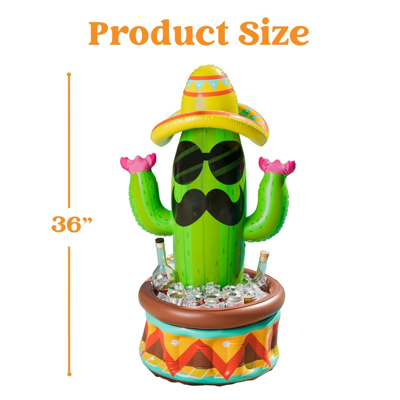 - GREAT INFLATABLE COOLER: Our festive inflatable cactus cooler features a cactus wearing a sombrero hat. A fun way to keep drinks cool for an outdoor summer bash