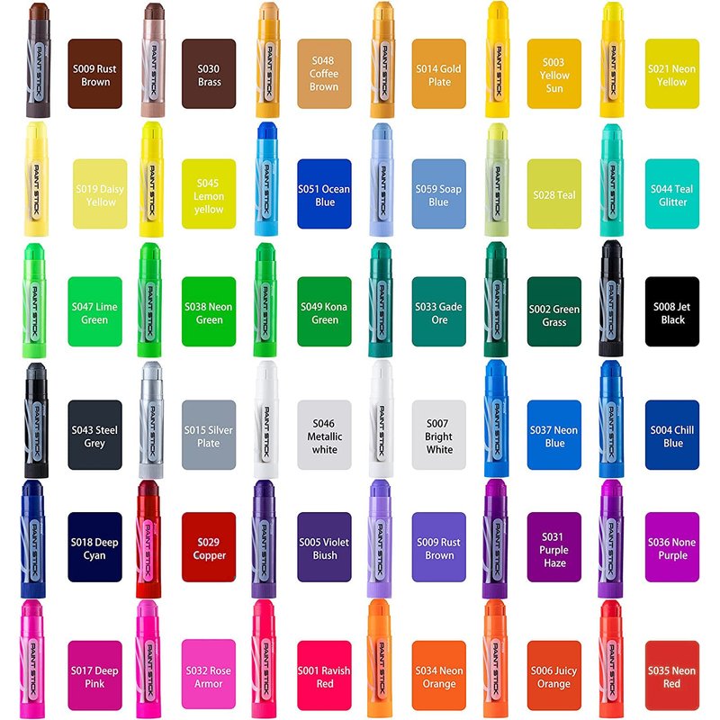 - SUPER VALUE PACK. Our Vibrant and Quick Dry Paint Sticks for Kids comes with 36 Brilliant Colors(0.42oz/12g).This Non Toxic Colors includes 24 classic colors, 6 metallic and 6 neon colors.