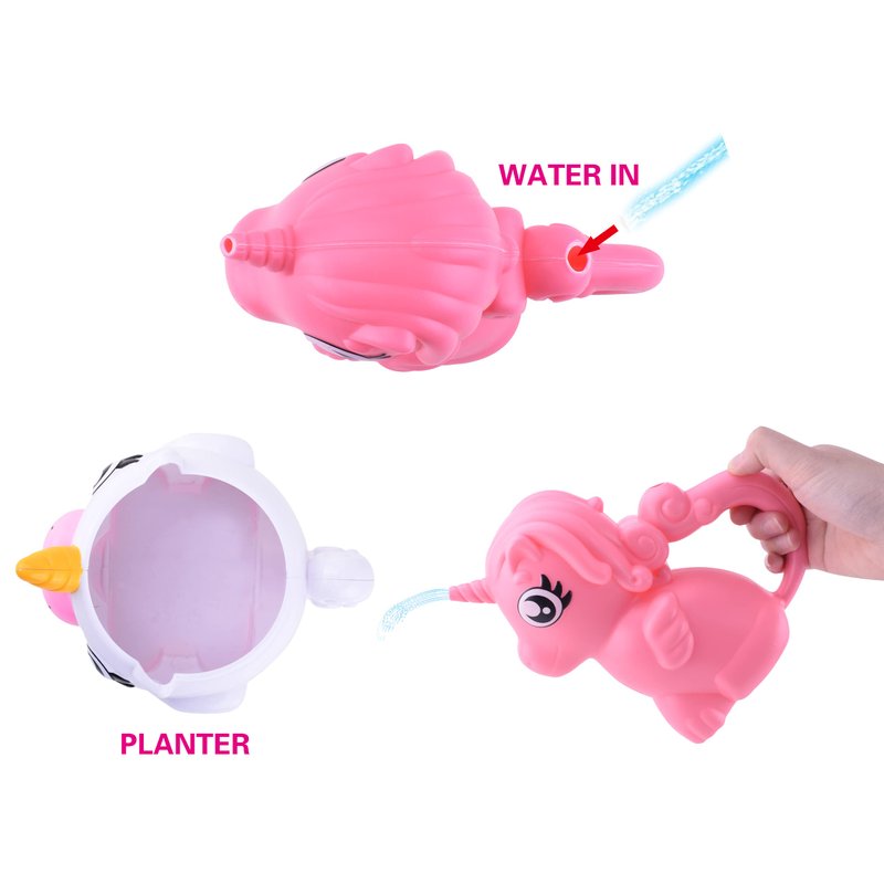 - COMPREHENSIVE SET. This all-in-one garden tool set includes 1 Unicorn Themed watering can bucket, 1 cute unicorn planter, 1 durable garden tote bag and 1 Apron with multiple pockets , 3 gardening tool kits like shovel, rake and trowel, 1 pair of kids gardening gloves, 1 UV protection bucket hat with an adjustable tie.The lightweight tools are easy to handle and the size is suitable for small hands. The tool bag and wearings are of high quality and made of sturdy canvas.