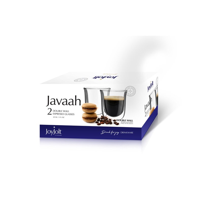 JoyJolt Javaah Double Walled Espresso Glasses Espresso Cups (Set of 2)- 2-Ounces