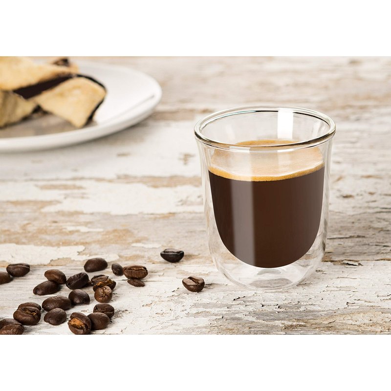 - A BEAUTIFUL WAY TO ENJOY ESPRESSO GLASS. Make your next coffee break something special. As you pick up your new double walled espresso mugs, indulge in the elegant way the coffee appears to float inside. Notice how it feels cool to the touch? Your espresso will stay piping hot for longer, so you can sit back and relax, taking your time to enjoy the rich taste and aroma.