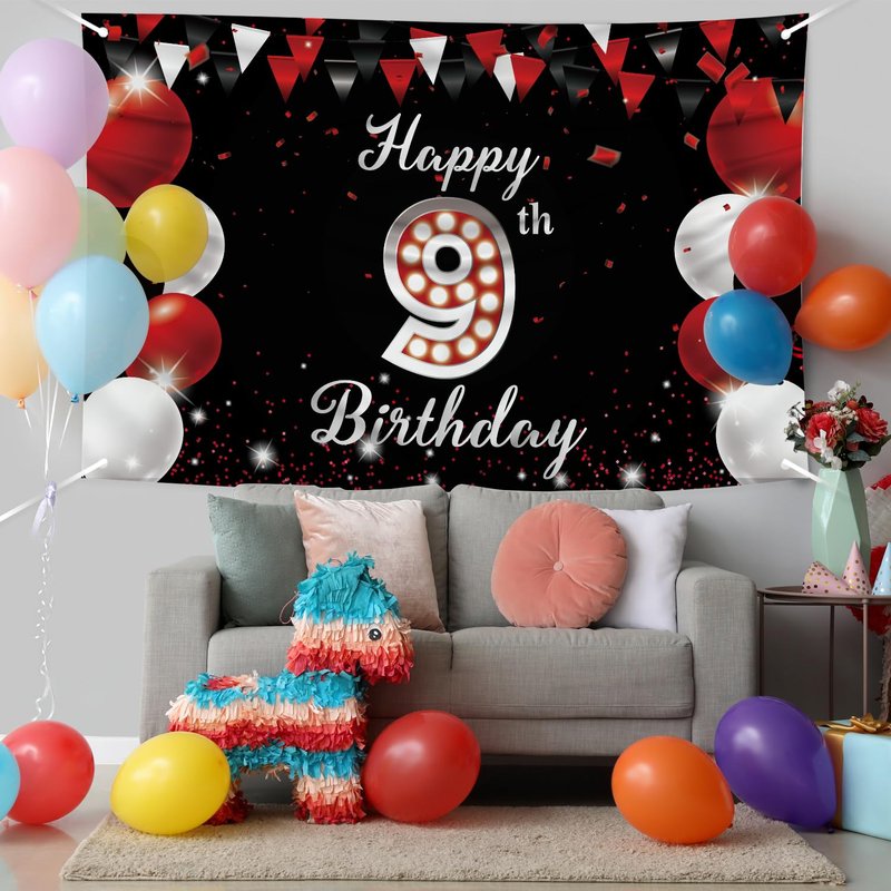 - EASY TO USE - All four corners of the banner have grommets made of solid copper. To decorate your 9th birthday party, simply use the rope that comes with and hang it as a wall background, dessert table decorations or a photo backdrop.