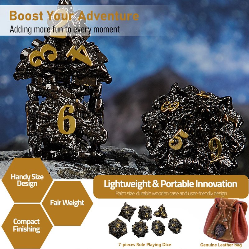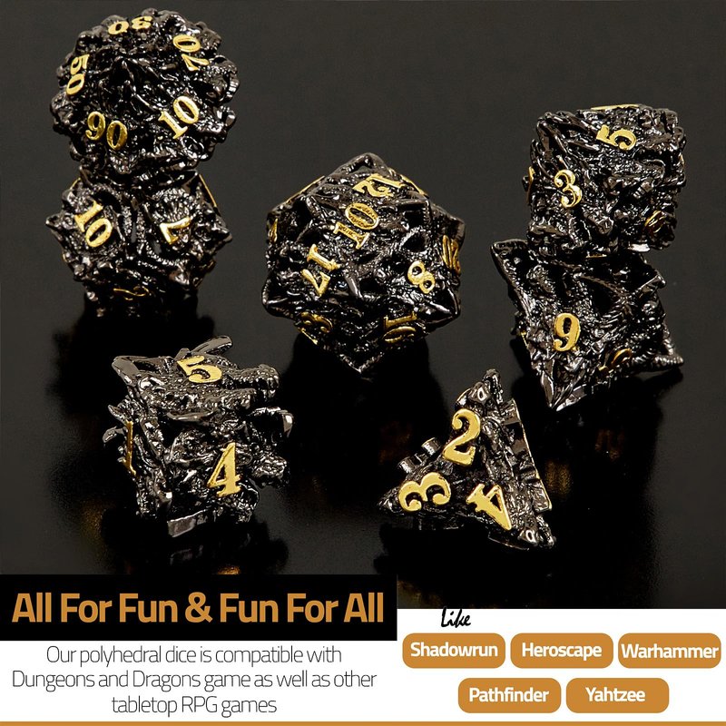 Get your tabletop game addiction rolling with the DNDMASTER Hollow Metal DND Dice Set!