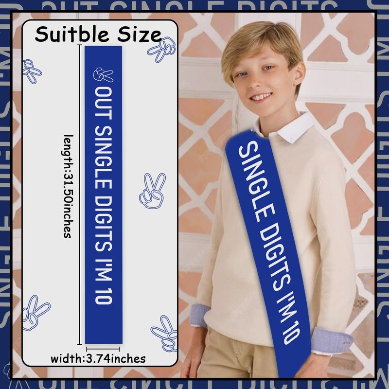 Package Includes: 1 x "Peace Qut Single Digits I'm 10" Sash 3.7*63inches Color: Blue Occasion: 10th Birthday