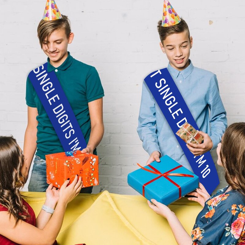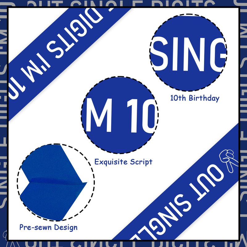 - Minimalist Style: This blue ribbon sash overall adopts a minimalist style. With a blue background and the slogan "peace out single digits i'm 10" printed on it, it looks simple, neat, and beautiful. Very suitable for boy’s 10th birthday party.