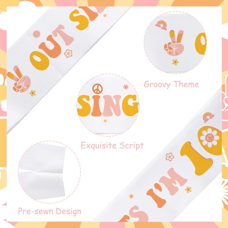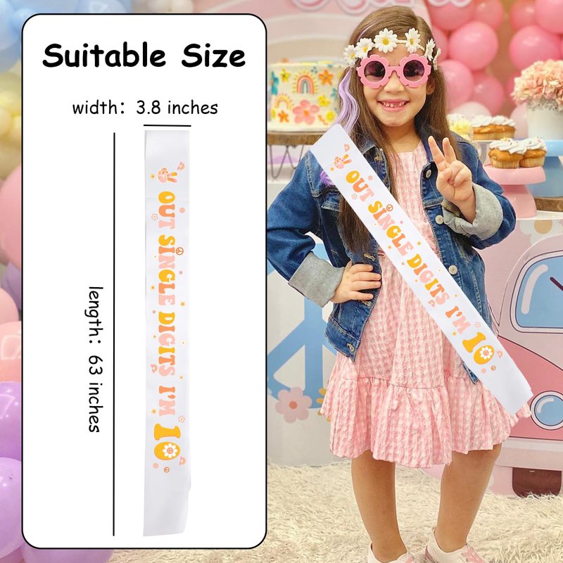- Unique Design: Our groovy 10th birthday party sash is designed as letters “PEACE OUT SINGLE DIGITS I'M 10”, and matched with retro hippie groovy elements, which serves as a nice addition to your party. It can bring you unforgettable memories to your baby birthday party.