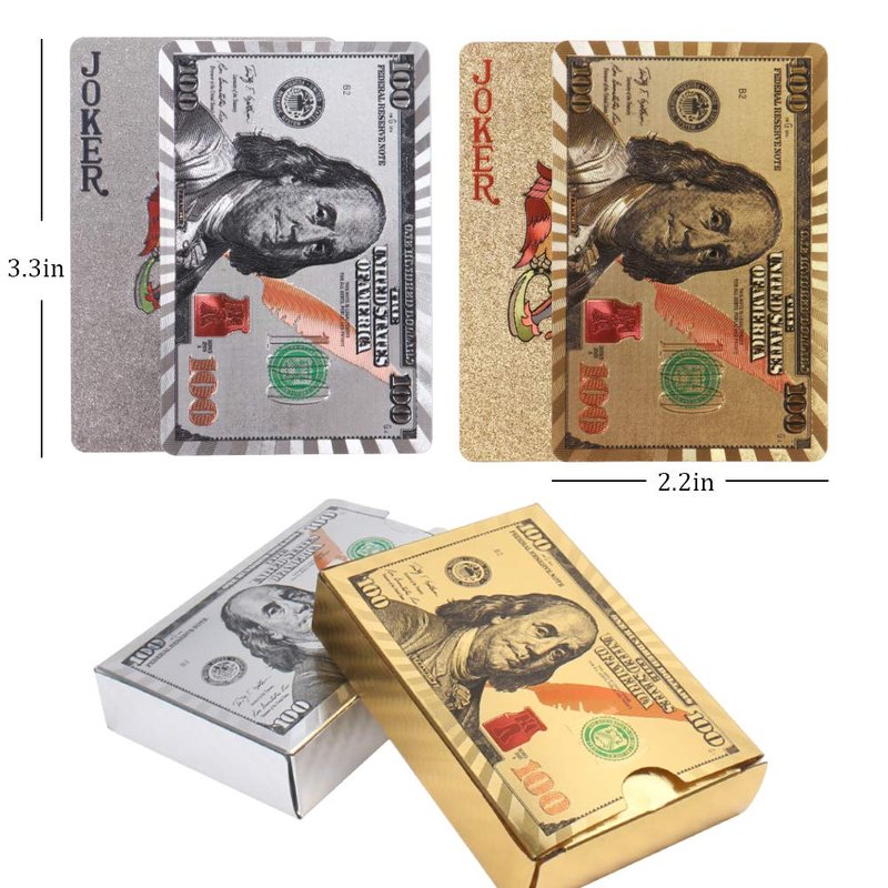 - Easy to Read - Playing cards with clear silver and gold word pattern on the front and dollar pattern on the back. Exquisite craftsmanship, you can easily read the words on the plastic playing cards.