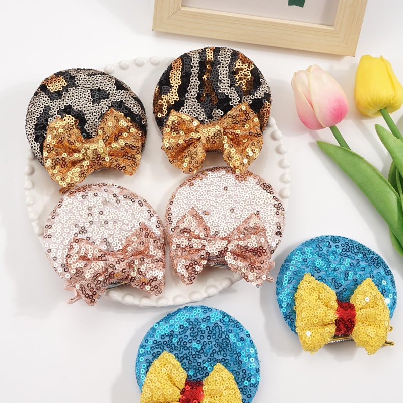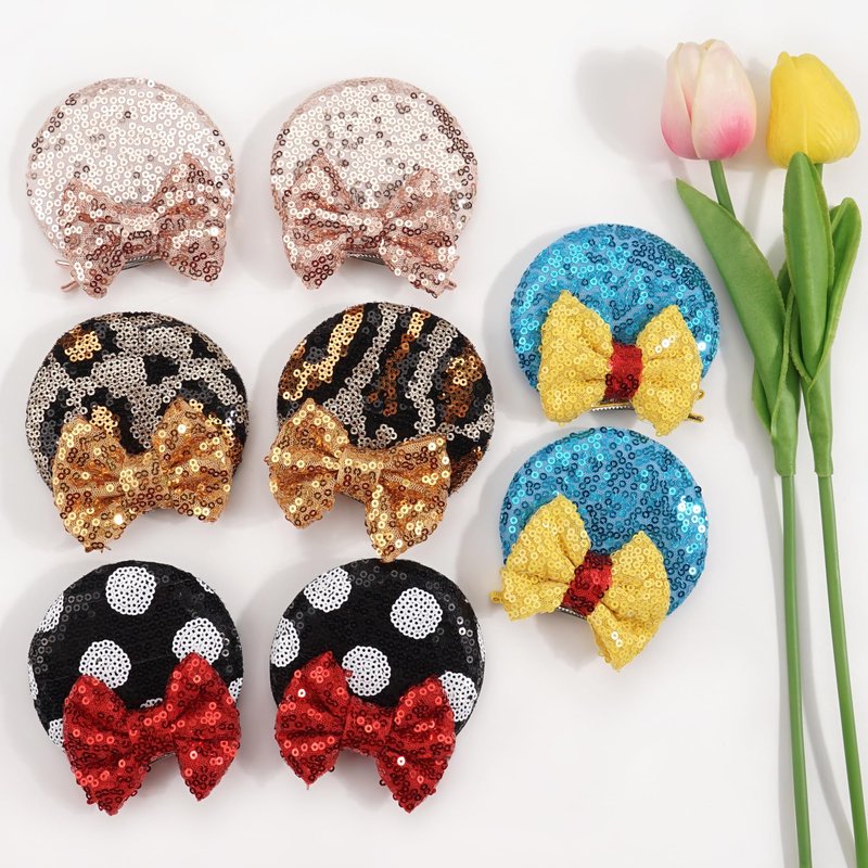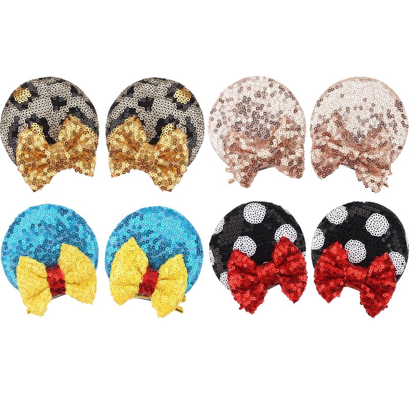 - ❤❤【Premium Quality Material】Round ear and hair bows are all made of sequins, they are bling bling, finishing with non-snag clip closure.Perfect replacement for mouse ear headbands preventing from headaches.Easy to use,Just clip it to your side hair bun or pigtail.