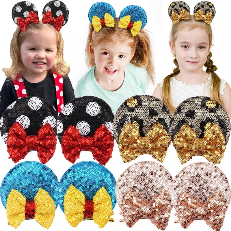 JOYOYO Sequin Mouse Ears Hair Clips,Glitter Hair Bows Cute Mice Ears Hair Clips Barrettes for Women Girls Hair Accessories for Costume Party Favor Halloween Christmas Decoration