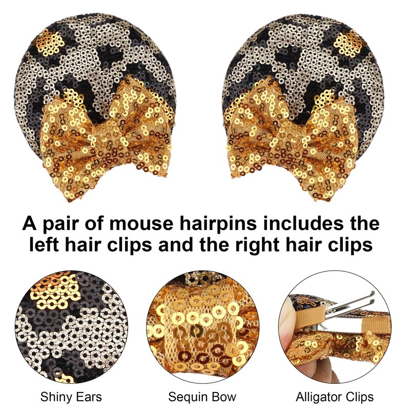 - ❤❤【No Headache and Decent Shape】JOYOYO sequin hair bow clips present a cute stylish and convenient alternative to traditional mouse ear head bands. They feature round mouse ears and dazzling sequin design, spice up a touch of glamour to any hairstyle at resort.