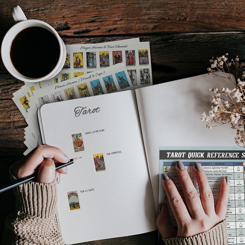 - 【Perfect Journal Size】Our tarot card set stickers have the perfect size for use with your tarot journal, planner, or calendar, each mini tarot cards sticker measuring 1.25" x 0.78" (3.2 cm x 1.9 cm). The size of tarot reference sheet is 10.4" X 6.5" (26.5 cm x 16.5 cm), which fits easily in your tarot journal for beginners learning tarot cards.