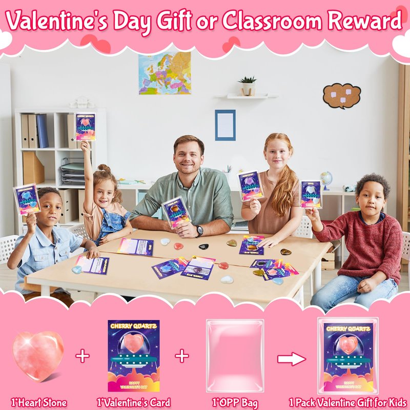 - Perfect Valentines Card Gift Set --- These bulk crystals rocks and gems collection kit is perfect combination of greeting cards and heart-shaped crystals, perfect for Valentines Day gift, Valentines exchange pack, classroom Valentine's Day celebrations, party favors, birthday parties, goodie bag fillers, party supplies, school class preschool rewards and more. It's great valentine gift for kids to share with their friends and classmates.