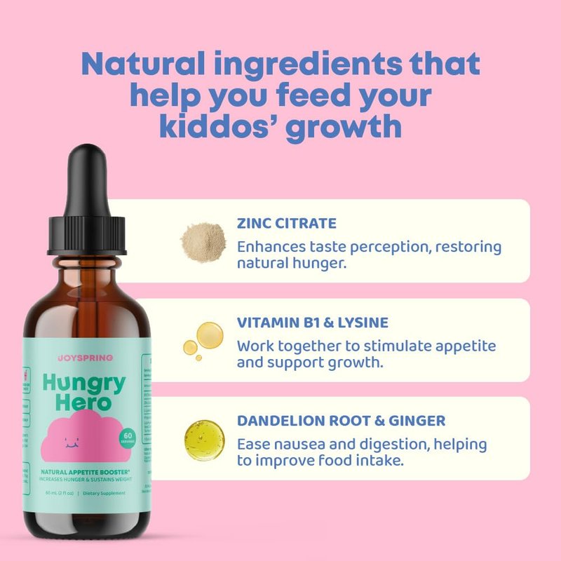 JoySpring Appetite Booster for Kids | Natural Weight Gain with L-Lysine & B Vitamins | Toddler Appetite Booster | Supports Healthy Growth & Development | 2oz Liquid