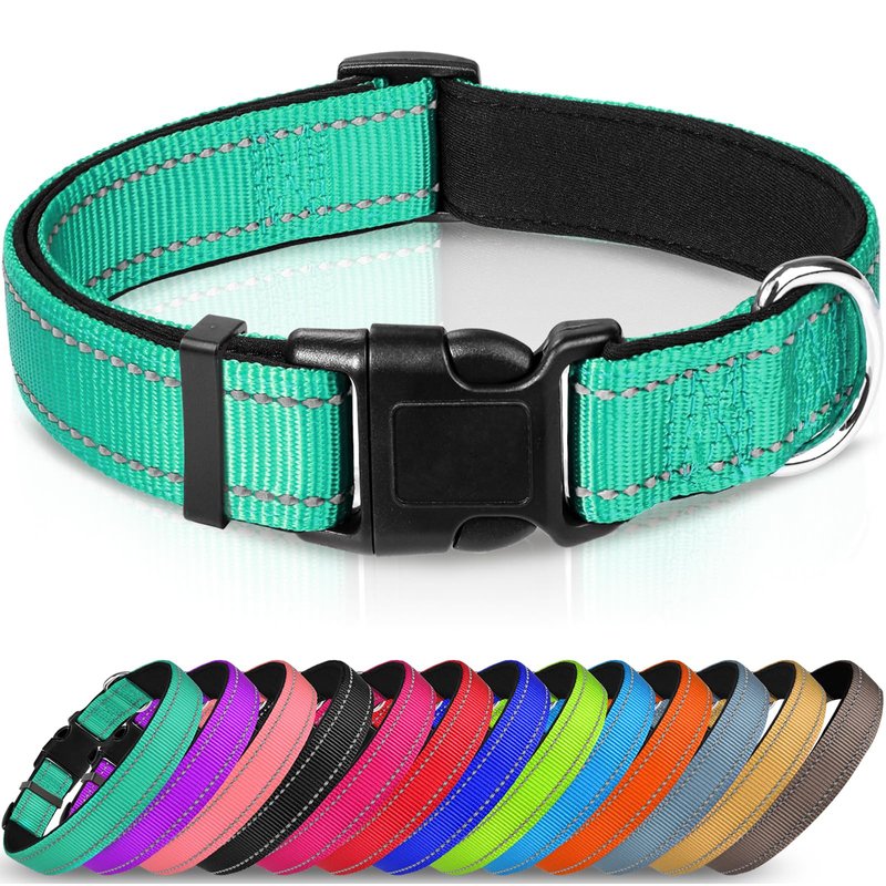 Joytale Reflective Dog Collar,Soft Neoprene Padded Breathable Nylon Pet Collar Adjustable for Medium Dogs,Teal,M