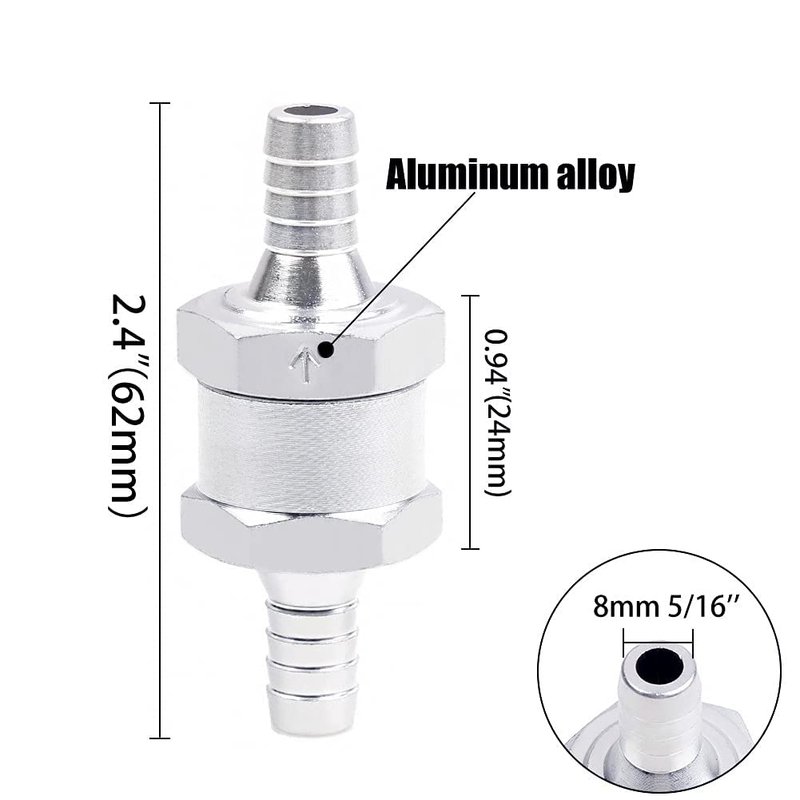 Joywayus 5/16" Fuel Non Return One Way Check Valve Petrol Diesel Aluminum (Pack of 2)