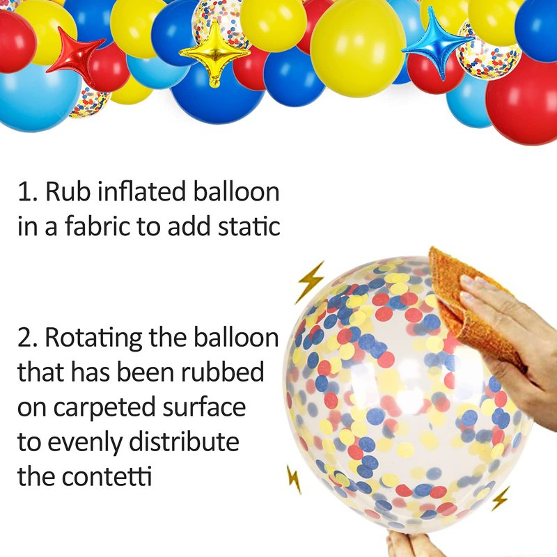 - Easy to assemble:We provide you with 4 tools that assist you to make the balloon garland arch more easily. Wipe the confetti balloon with dry hair or blankets so that the confetti is evenly distributed over the surface of the balloon. You can assemble them within 24 hours before the party to get the desired effect, and it is recommended to inflate them with an electric balloon pump, saving you a lot of time to enjoy the party
