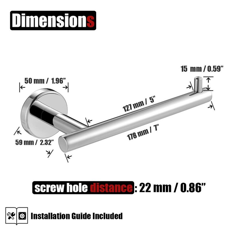- 【High Quality Toilet Paper Holder Chrome】 T-304 premium-grade stainless steel Tube Thick 0.8mm Post Thick 2mm for protect against corrosion & rust.