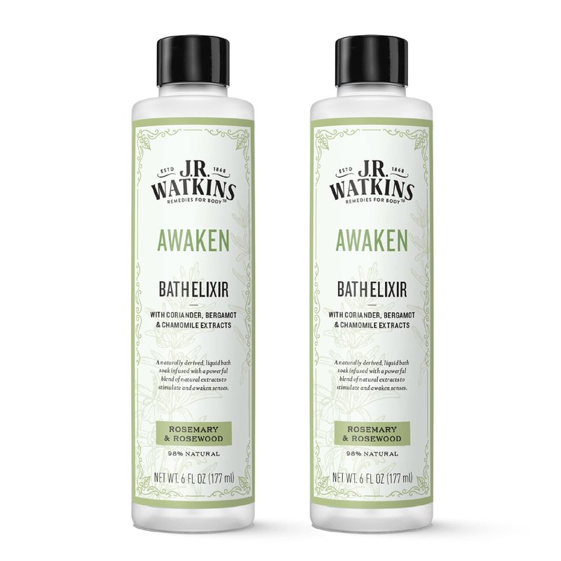 J.R. Watkins Awaken Bath Elixir, Liquid Bath Soak, Rosemary & Rosewood with Natural Extracts, No Salt, No Residue, 6 oz (Pack of 2)