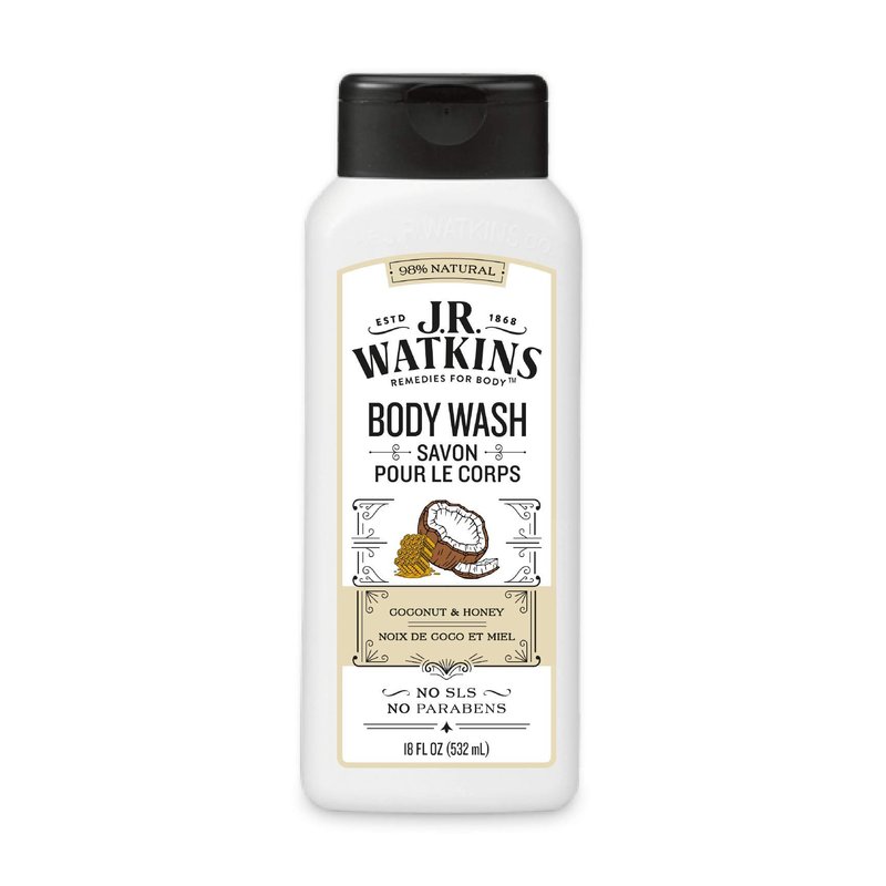 - J.R.Watkins Daily Moisturizing Coconut Milk & Honey Body Wash has 97% natural ingredients.