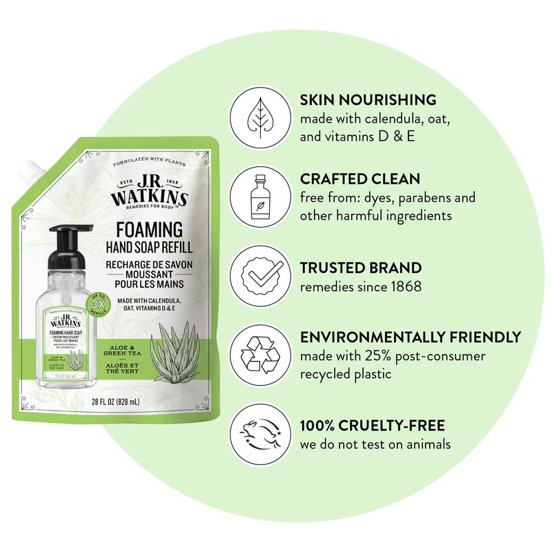 J.R. Watkins Liquid Foaming Hand Soap Aloe and Green Tea Refill, Pack of 1