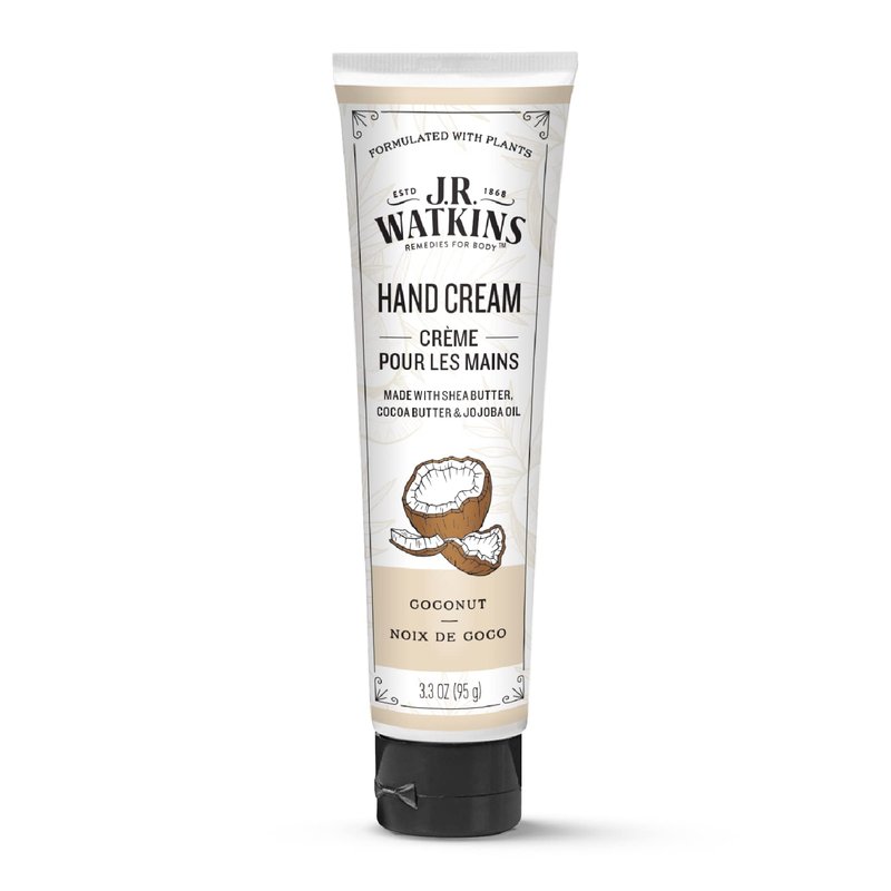 J.R. Watkins Natural Moisturizing Hand Cream, Coconut, Hydrating Hand Moisturizer with Shea Butter, Cocoa Butter, and Avocado Oil, USA Made and Cruelty Free, 3.3oz