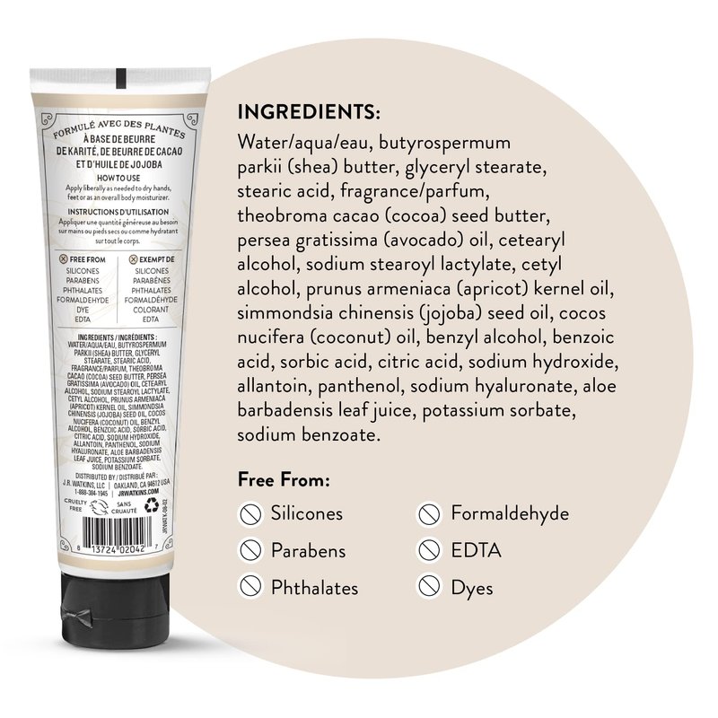 - REVITALIZE YOUR SKIN: Leave your hands soft, smooth, and healthily moisturized with J.R Watkins nourishing hand cream. Made with shea butter, cocoa butter, and avocado oil, our hand cream nourishes and hydrates to improve the look and feel of dry, aging, or cracked skin.