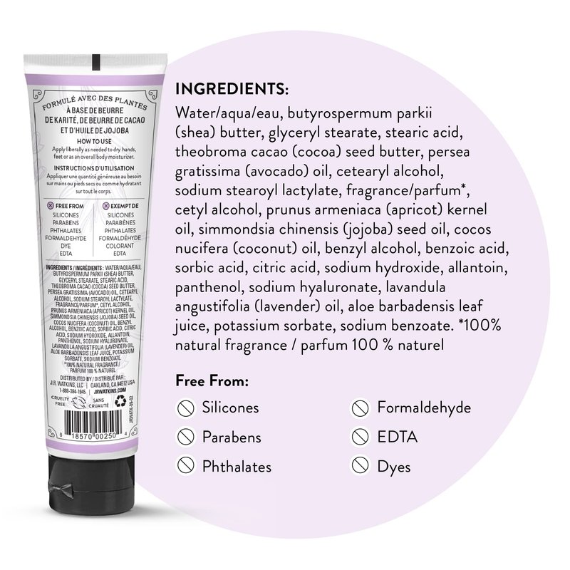 J.R. Watkins Natural Moisturizing Hand Cream, Hydrating Hand Moisturizer with Shea Butter, Cocoa Butter, and Avocado Oil, USA Made and Cruelty Free, 3.3oz, Lavender, Single