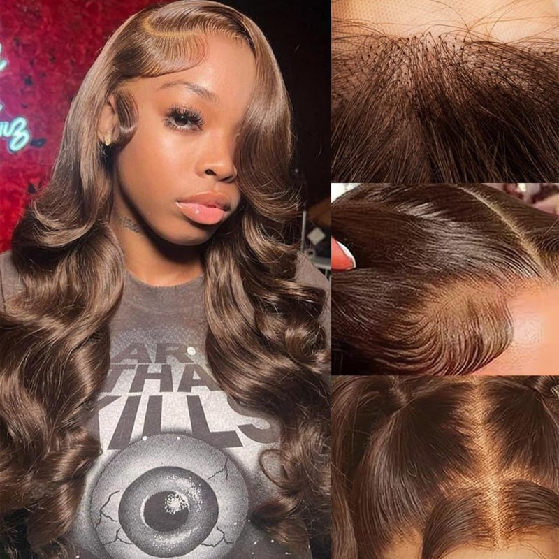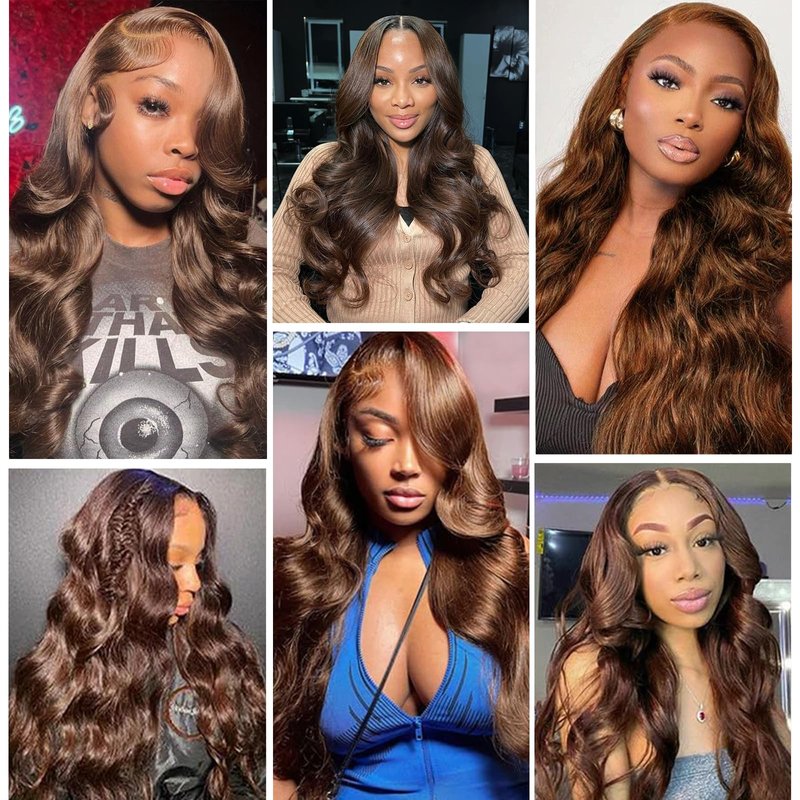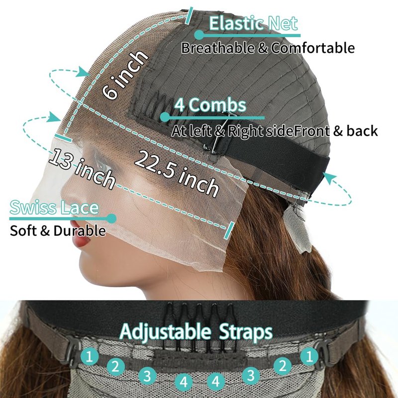 - 【Chocolate Brown Body Wave Lace Front Wigs Human Hair Cap Details】Brown body wave lace front wig human hair,medium size(22-22.5inch),with 2 adjustable straps and 4 combs,easy to install and adjust straps.wear comfortable fit for most people,easy to install and take off,13x6 ear to ear hd transparent lace frontal wigs, pre plucked with natural hairline,soft & durable, breathable & invisible.