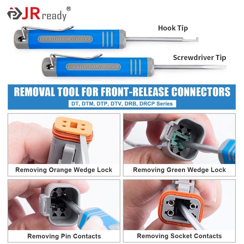 - 【Insertion & Extraction Tool】: This tool is a great multipurpose tool allowing the user to remove wedgleocks and also release pins and sockets on several Deutsch series connectors such as : DT, DTM, DTP, DRB, DTV and STRIKE Series. It is equivalent to DRK-RT1 extraction tool.