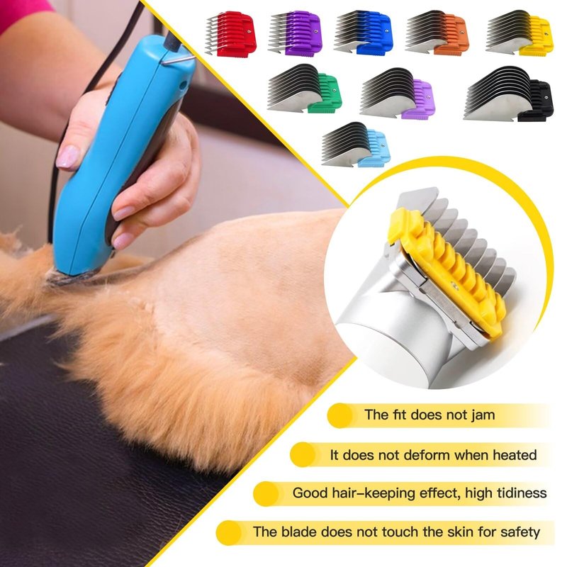 9 Color guide combs for easy identification, effortlessly glide through small, medium, and large-sized dogs and cat coats