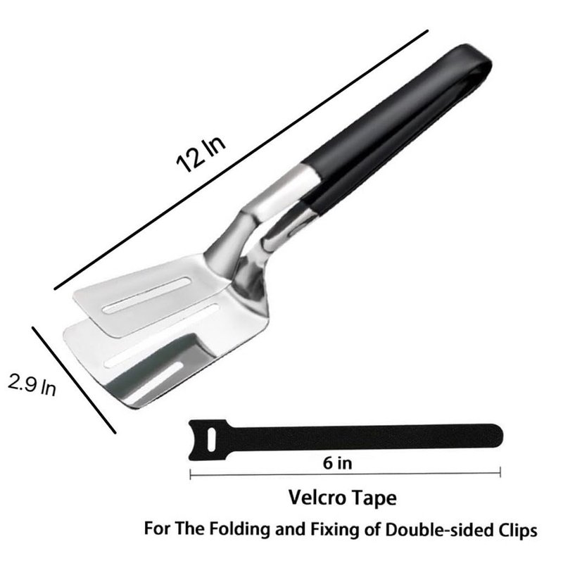 Jrsoul He Kitchen Cooking Tongs,Big Size Spatula Tong 12 Inch Multifunctional Stainless Steel Barbecue Clamp Food Flip Shovel Clip for Steak Fish Bread Hamburger BBQ Frying Pancake Pies Pizza