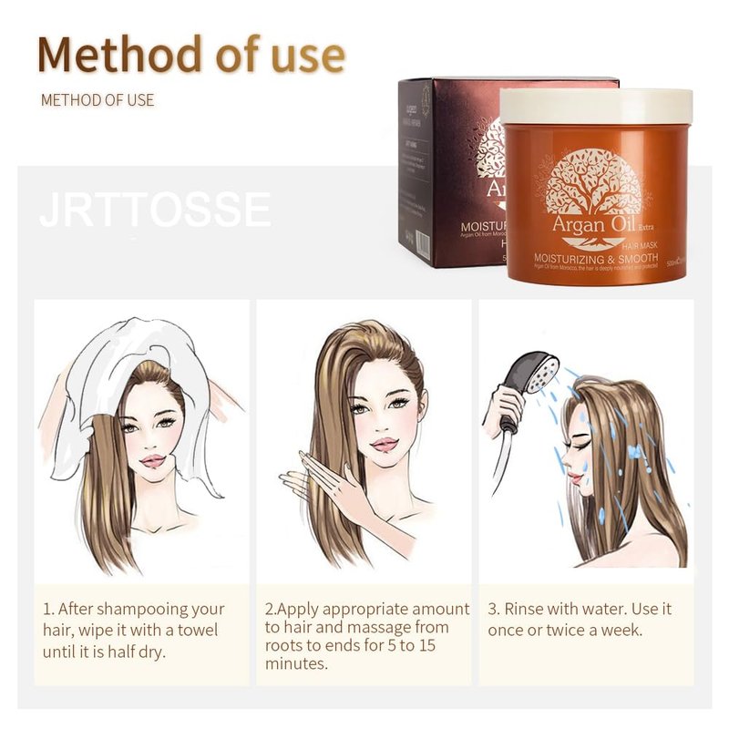 The power of a Moroccan Argan Oil hair mask has been known for generations to naturally improve the vibrancy and health of your locks. Pure Nature treatment hair mask penetrates deep from root to tip help restore damage from chemicals, sun exposure and pollution. JRTTOSSE argan oil moisturizing hair mask also helps protect against split ends.