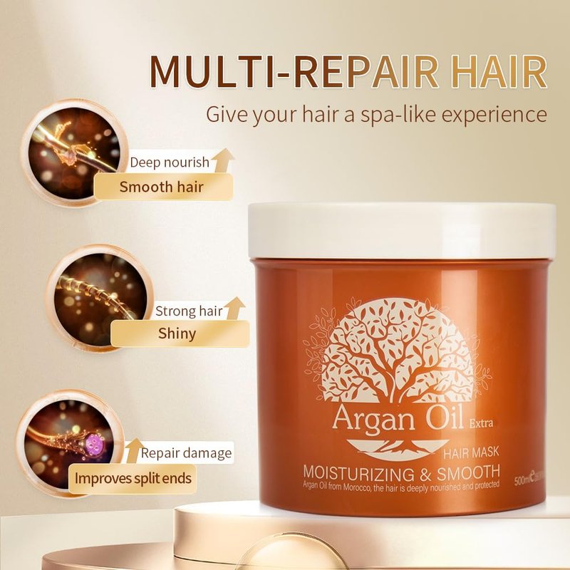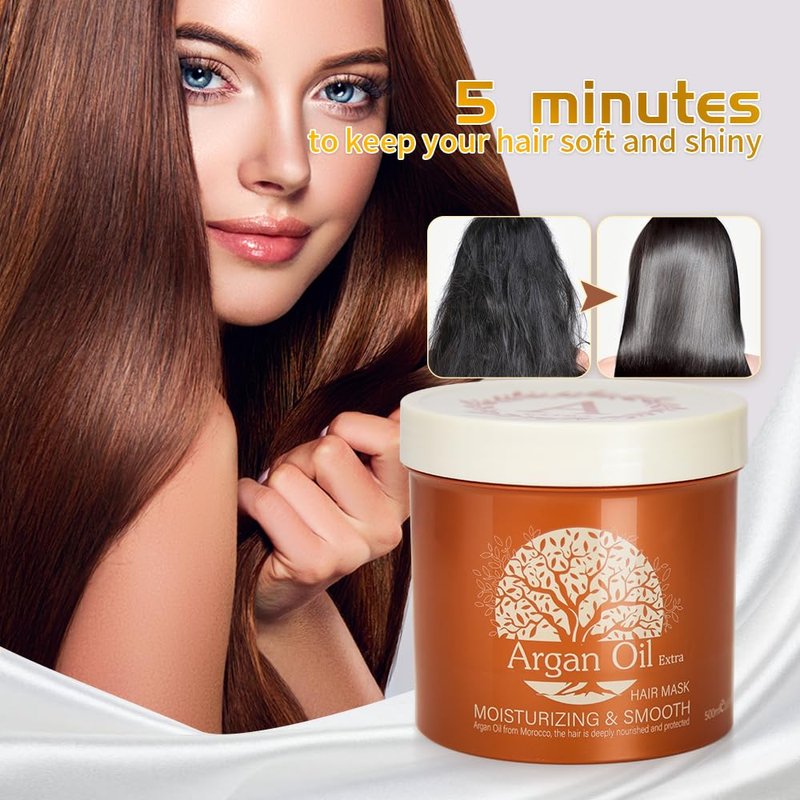 JRTTOSSE Argan Oil Hair Mask, Repair Split Ends Dry Damaged Hair, Moisturizing & Smoothing Hair Mask for Dry Damaged Hair of All Hair Types 16.90 oz 500 ml (16.90oz-500ml)
