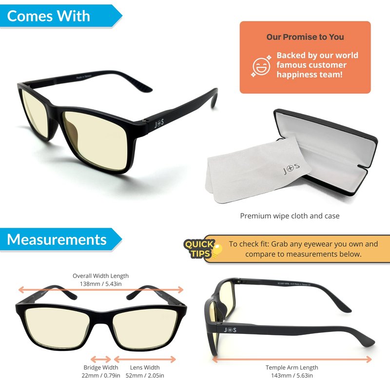 - [Experience Relief with Blue Light Glasses]: non-prescription glasses that filter out high-energy blue light from electronic devices, including computers, TVs, smartphones, and even fluorescent lights. Say goodbye to eye fatigue, headaches, and sleep disturbances caused by excessive blue light so you can work or play on any device with ease.