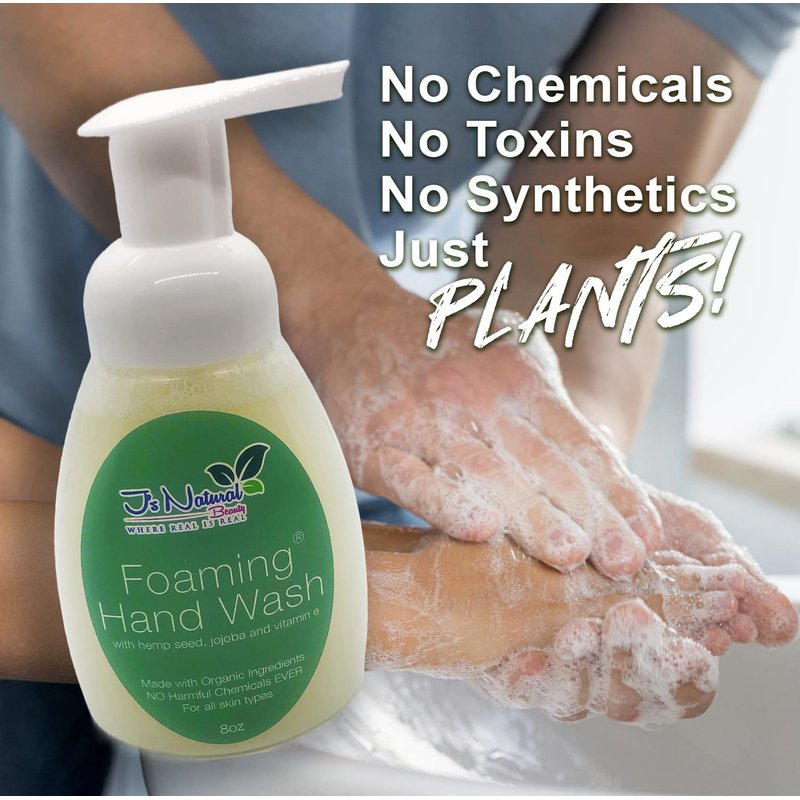 J'S NATURAL BEAUTY WHERE REAL IS REAL All Natural Foaming Hand Soap with Organic Ingredients. Totally Vegan/with Jojoba