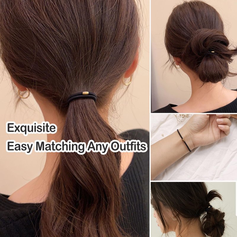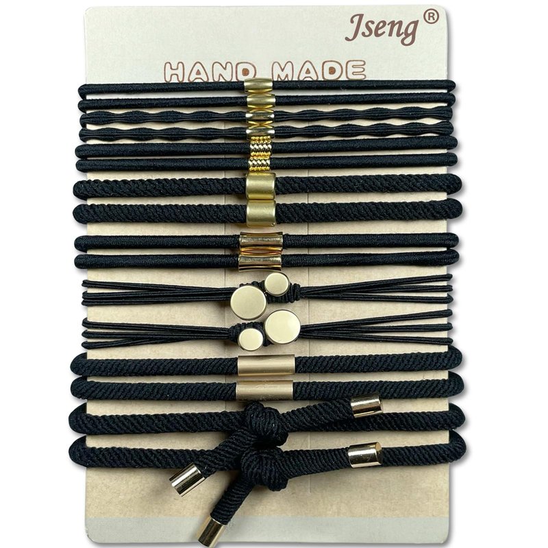 - You are unique: Jseng black hair ties bring you fashion and unique hairstyles, from curly buns to straight ponytails and more. Includes 16 gentle black bracelets hair ties with different thicknesses are suitable for thin and thick hair and more.