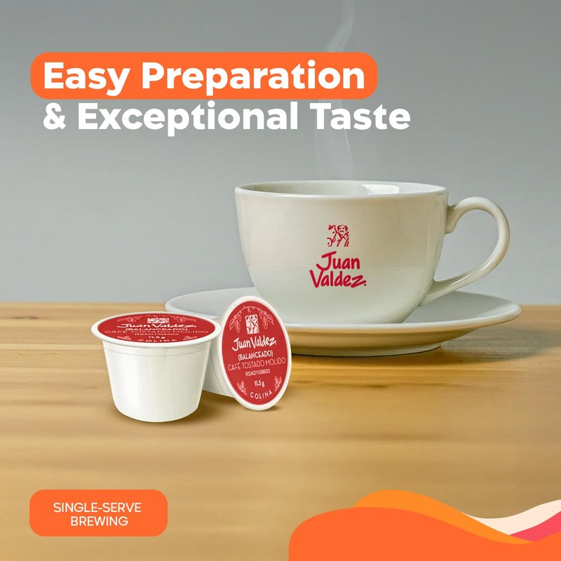 Enjoy café-quality taste at home with Juan Valdez Medium Roast Coffee Pods, crafted for Keurig coffee machines. Each pod contains 100% premium Colombian Coffee, roasted to perfection, highlighting smooth white chocolate and peach notes. Our k-cups coffee are pre-measured, sealed for freshness, and designed for effortless brewing in your Keurig coffee maker to deliver a balanced, authentic flavor in every sip. Behind every Juan Valdez k cup lies the dedication of over 550,000 Colombian coffee-growing families. By choosing our coffee pods, you support sustainable farming and enjoy premium quality rooted in tradition. Discover why coffee k cups from Juan Valdez stand out: rich aroma, smooth taste, and the unmistakable essence of Colombia. Bring home a premium coffee experience with every pod. Search Terms: espresso blend reusable pod compatible capsule morning brew hot beverage latin coffee travel pack no sugar filter columbian coffee k cups coffe cápsula keurig cafetetera cafe cappuccino