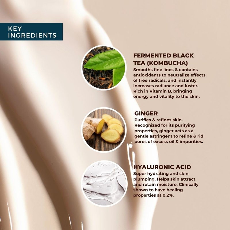 - FORTIFY WITH ANTIOXIDANTS: The lightweight formula protects and neutralizes the harmful effects of free radicals. Rich in Vitamin B, kombucha, aka fermented sweet black tea, increases radiance, skin luster, and helps smooth fine lines and wrinkles. Hyaluronic acid provides deluxe hydration, plumping the skin.