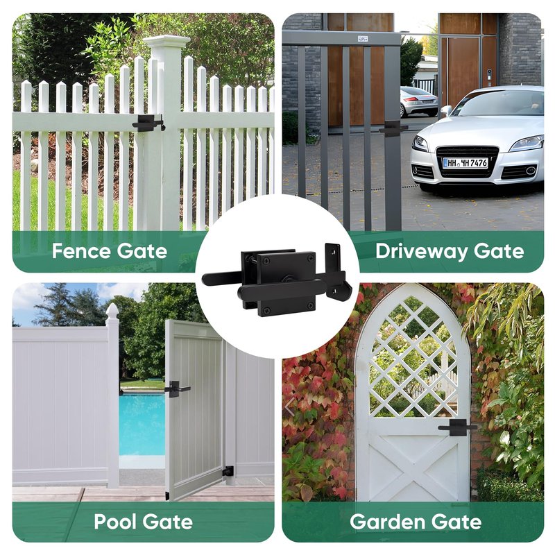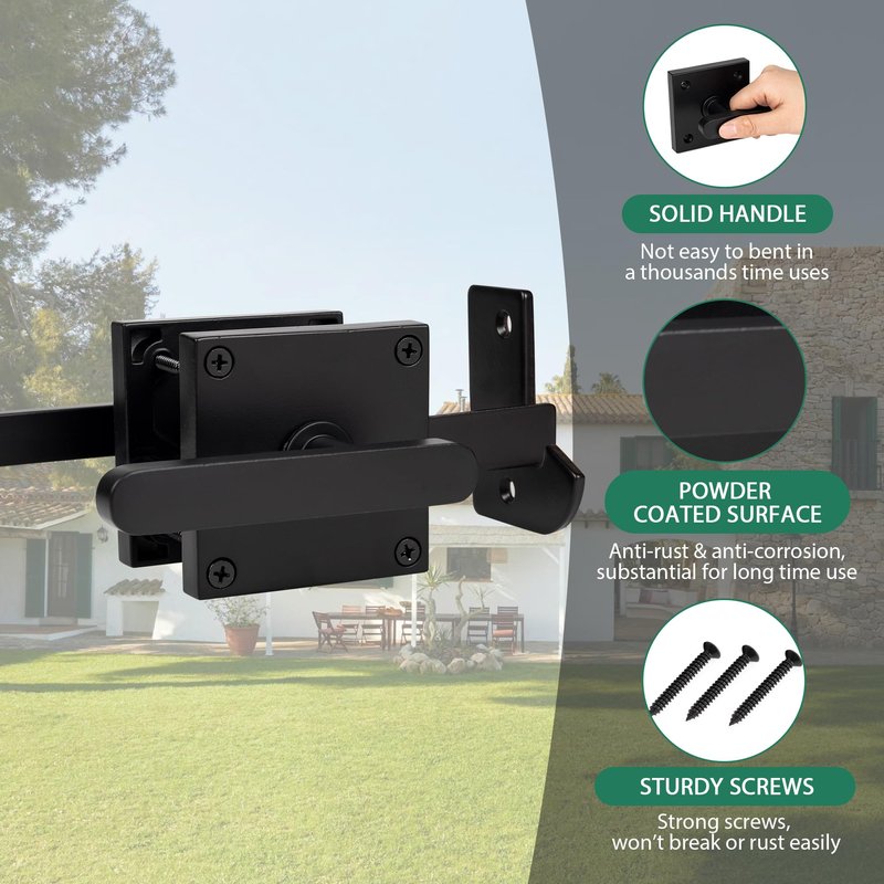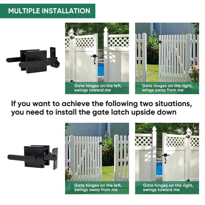 - 🏕️🐕UNIQUE DESIGN: Two handles on either side, the back has the same exquisite design and appearance as the front. Built-in springs ensure the door for self locking. Easily opened and closed from the inside and outside. ❗❗❗PLEASE BE ADVICED THAT THIS LATCH IS ONLY FOR A RIGHT INSWING GATE.
